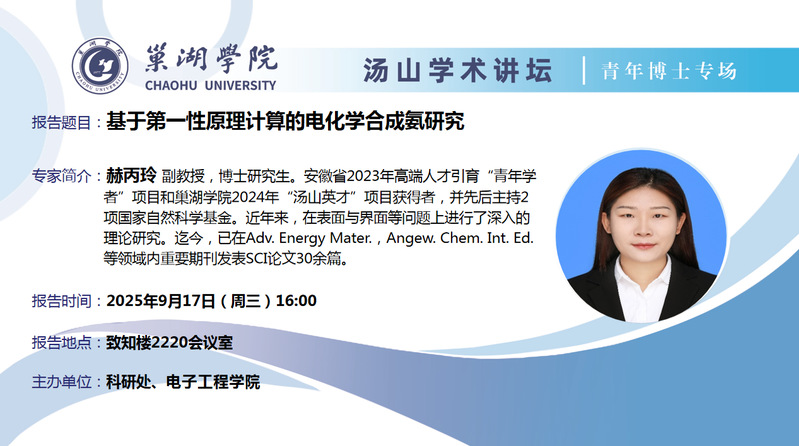 • 9月17日:巢湖學院電子工程學院赫丙玲副教授講座